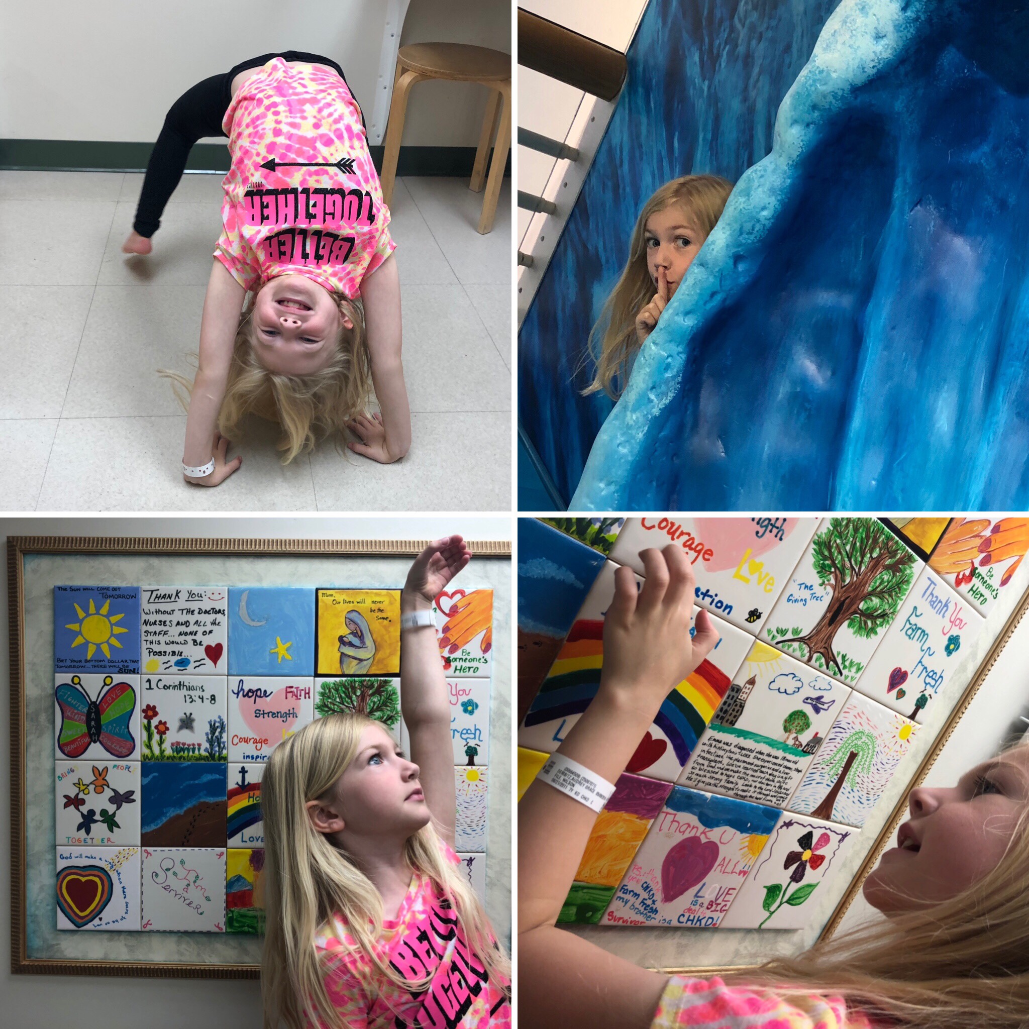 Audrey’s annual oncology checkup has a number of traditions. She plays at the big wave on the second floor. She finds her favorite tile – the art project of a bravo kiddo from long ago – and she runs her fingers over the words Hope, Faith and Courage. We walk through the butterfly garden and have some quiet time. We get Starbucks when all of our checks and talks and papers are done.