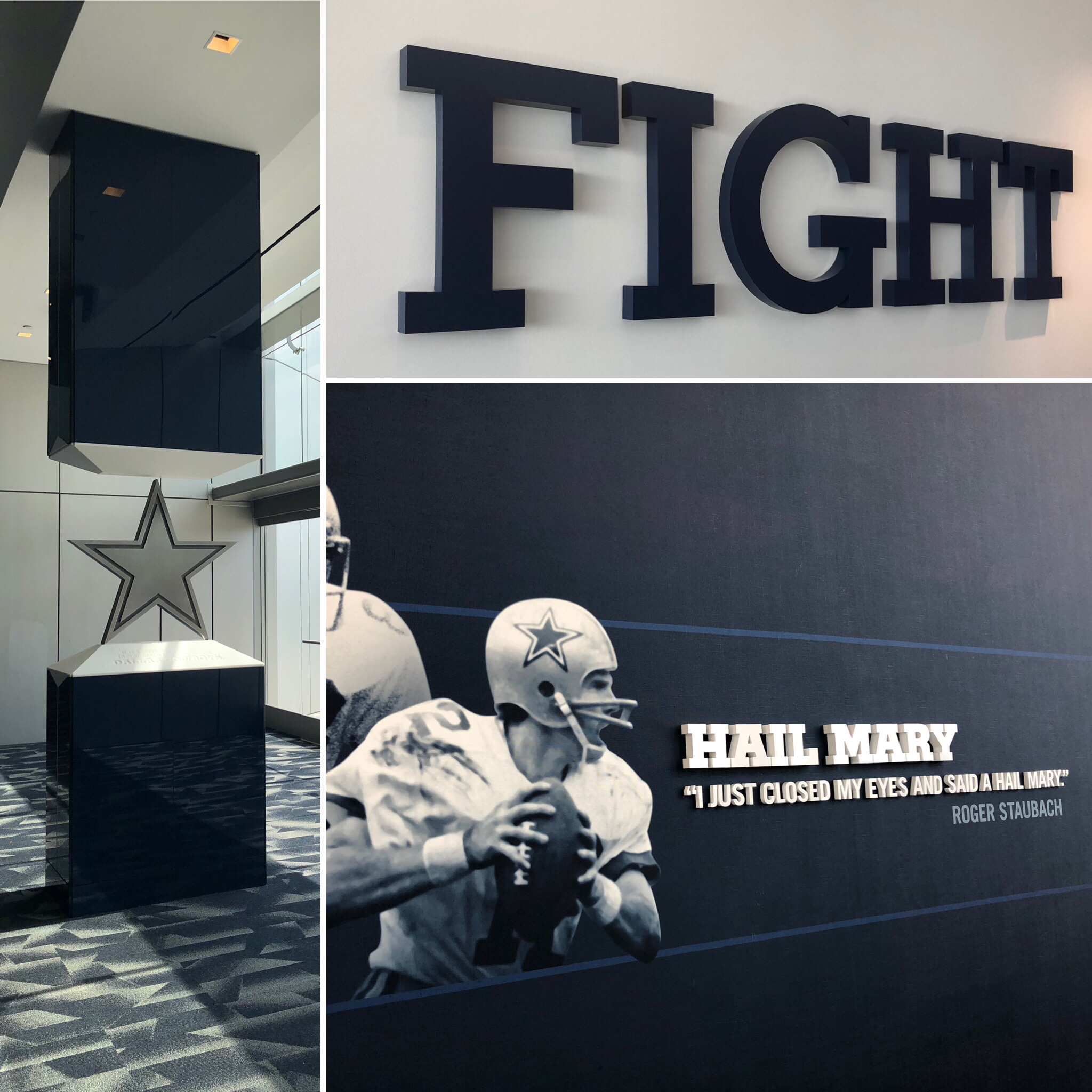 I know very little about sports, and all I really know about the Cowboys is that they can’t be all that bad because they love navy blue and navy is my favorite color. I visited the Ford Center a while back and I learned about the Hail Mary. I’m not sure I think it’s really a way to “winning” but I like the idea of doing something while hoping and praying for the best. I was also introduced to this Jason Garrett gem: Fight. Fight to be your best. Fight for each other.