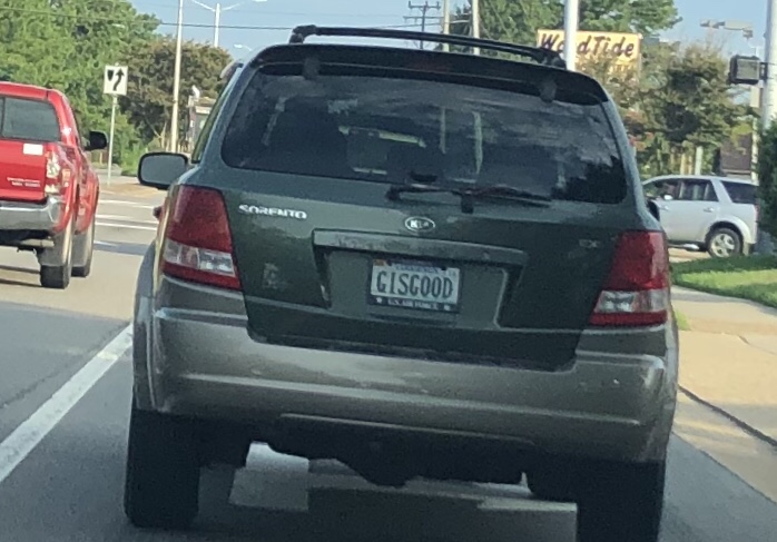 And then I looked up as the traffic light turned green and noticed the car in front of me. It’s license tag, my sign: G Is Good.