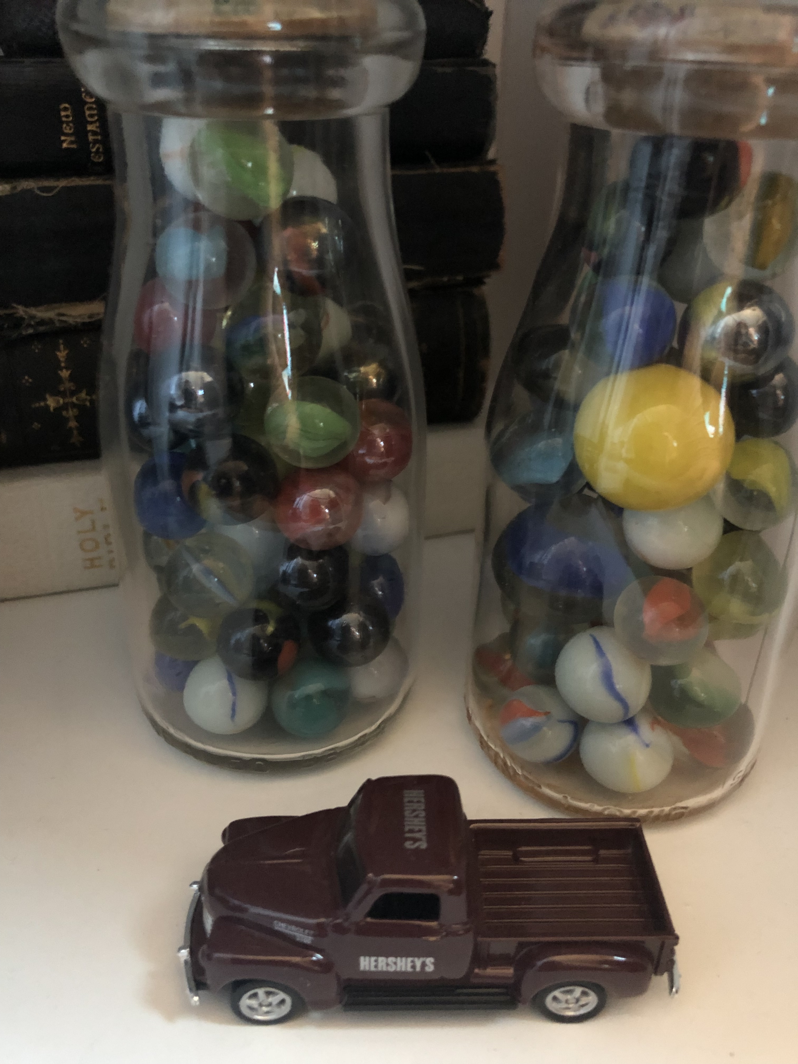 My home is filled with random stuff, what you might characterize as contradictions. Our family rooms are filled with pieces that mean something or that I just like, regardless of whether or not they go together – so vacation mementoes sit next to antique marbles, old hymnals are next to Nancy Drew books, handmade kid crafts are on the same shelf as crystal, and stainless steel is in the same view as red barn doors and old quilts. I am done with trying to make me and make my home look congruous.