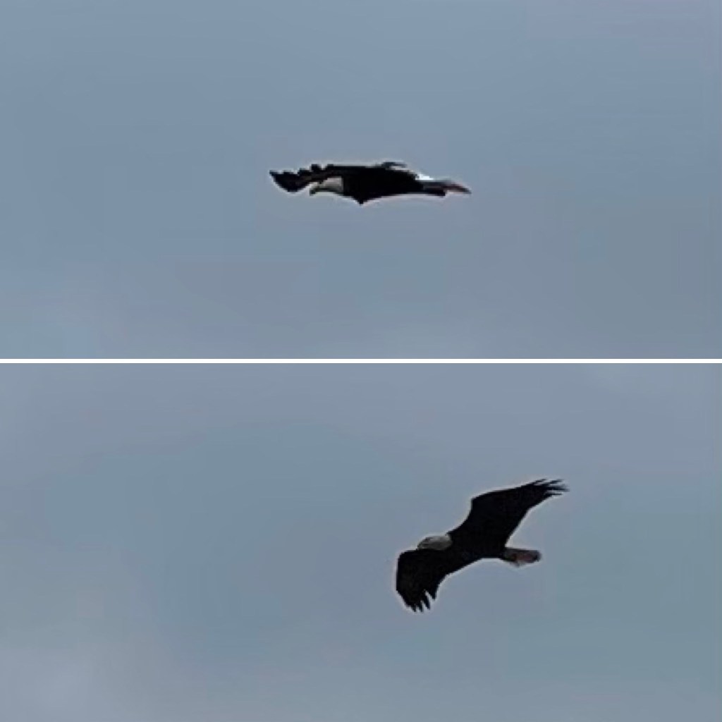 This morning on the way home from an eye appointment with Ella, I saw my eagle. I feel such a kinship with this bird and this is the lowest and closest he has ever been flying near me. The pictures are not good because I didn’t think to get the phone/camera in time because I was too busy watching him and delighting in the moment, and also trying to convince my child I had not lost my mind because I wanted to pull over and really see him. But he was literally hovering over my car, maybe 10 feet above at one point.